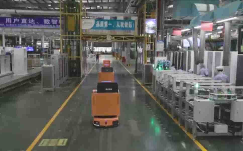 为车载冰箱物流配送打造的智能解决方案,,,,包含产中物流通过潜伏举升AMR搬运至线边,,,,产后成品物流智能仓储,,流程包含产中物流智能齐套入库,,,,线边安灯叫料AMR智能配送至线边,,,成品入库、、、、出库,,通过无人堆高车机器人,,,,智能仓储管理替代人工作业管理,,,实现更高存储、、、更高效率、、更具柔性化的解决方案。。。